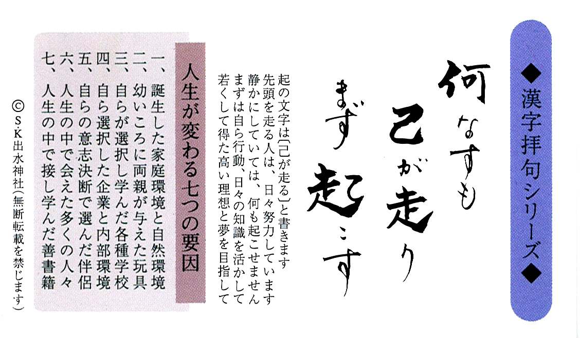 下記が、拝観御礼、人生が変わる七要因のカード。
